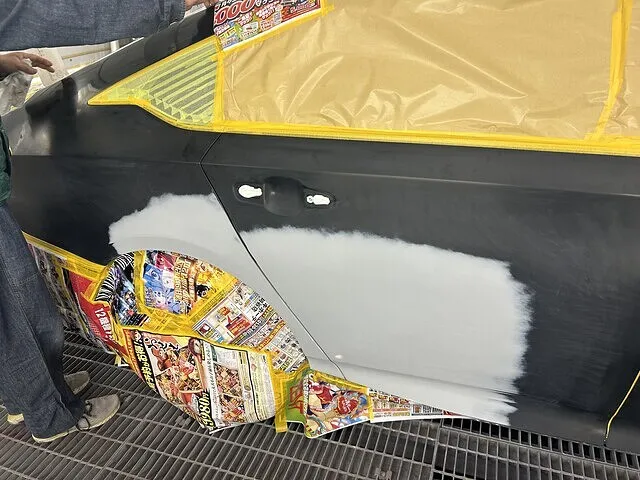 色ができたら塗装。リアドアとクォーターパネルを中心にフロントドアをぼかして塗装します。