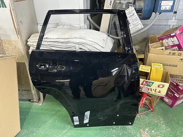 次にリアドア分解。すべての部品を外します。外したらリアドアを脱着しフロントドアの付属品と右テールランプ、リアバンパー一部も外します。