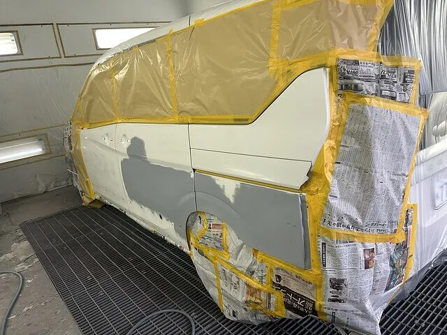 色ができたらスライドドアとクォーターパネルを塗装。フロントドアは一部ぼかして塗装します。
