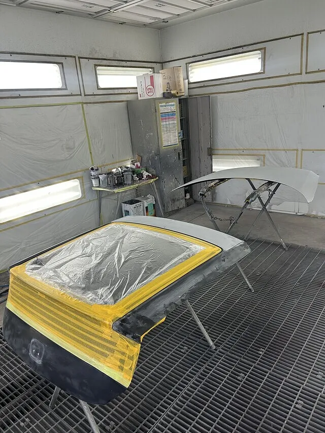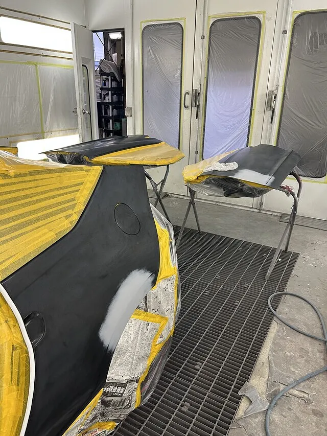 一回目の取り外し部品(フロントバンパー・リアバンパー・小物類)を数点塗装したら、2回目の取り外し部品(ボンネット・バックドア等)を塗装します。