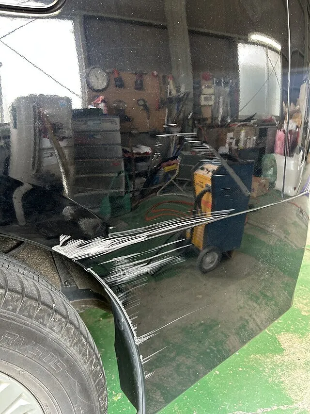 修理希望個所は左クォーターパネルとリアバンパーです。走行中に障害物に寄ってしまい、ぶつかってしまったそうです。すぐに安城付近の修理工場を探しました。