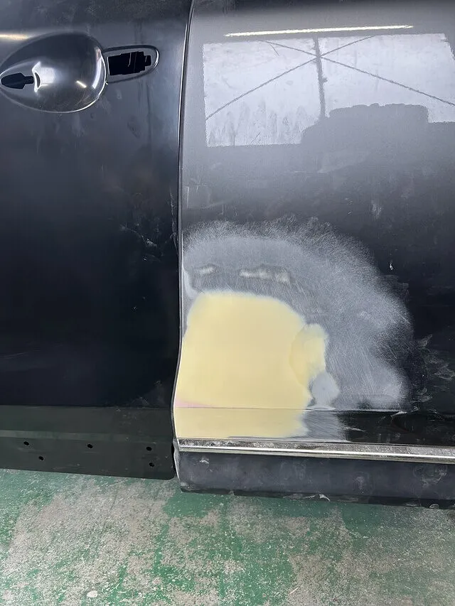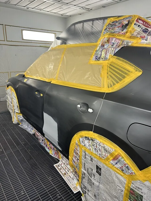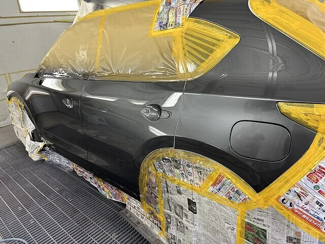 こちらが塗装後の写真です。先ほどの塗装準備ができたらフロントドアとリアドアを中心にフロントフェンダーとクォーターパネルをぼかして塗装します。