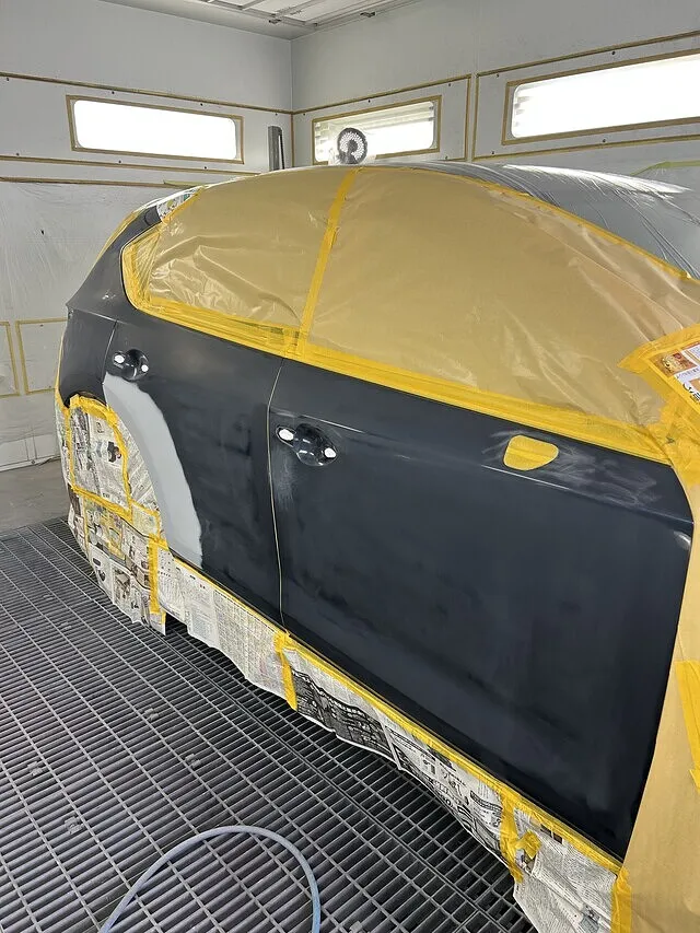 板金修理後はフロントドアとリアドアの付属品を外し、右テールランプを外した後に、リアバンパー右側だけ外します。